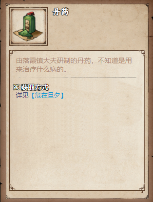 发配给与死囚营兵士的一种药物,服下后可使其暂时忘却一切恐惧全力战斗,此药负面效果极强,可死囚营的兵士也不会知道了...