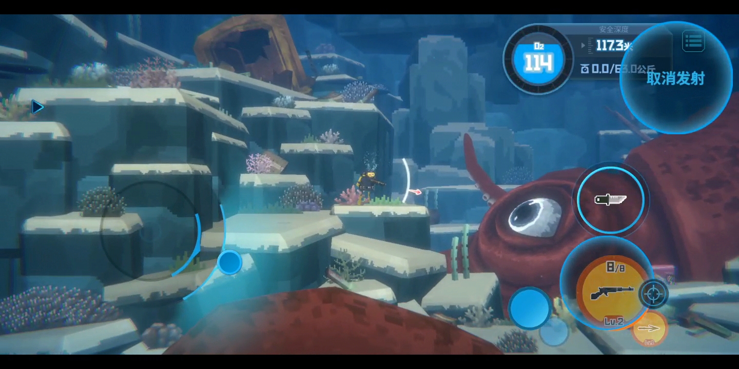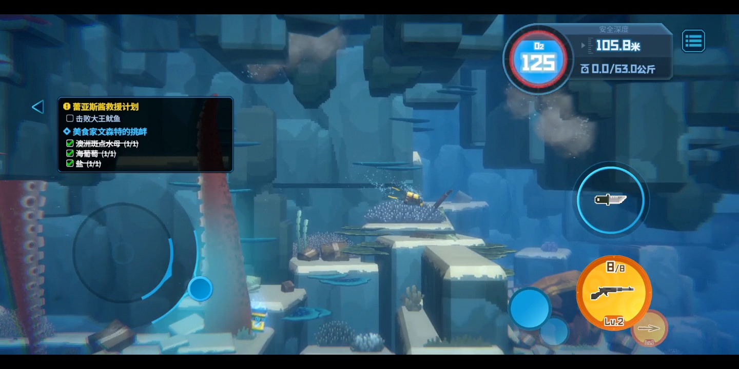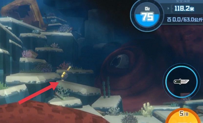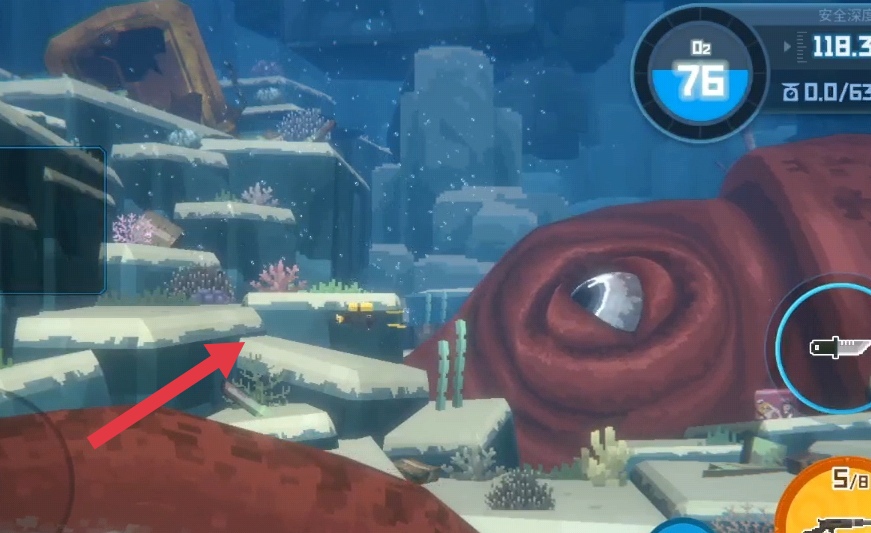 这个阶段直接加速冲到大鱿鱼面前打它眼睛,别害怕掉氧气,打够伤害后进入二阶段。