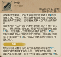 ② 不应过度依赖手电筒进行牵制,现版本大部分监管者都会携带【耐受力】、【愤怒】等天赋,短时间内多次照晕监管者并不能达到1+1=2的等价晕眩效果,应掌握好对道具耐久度的控制。