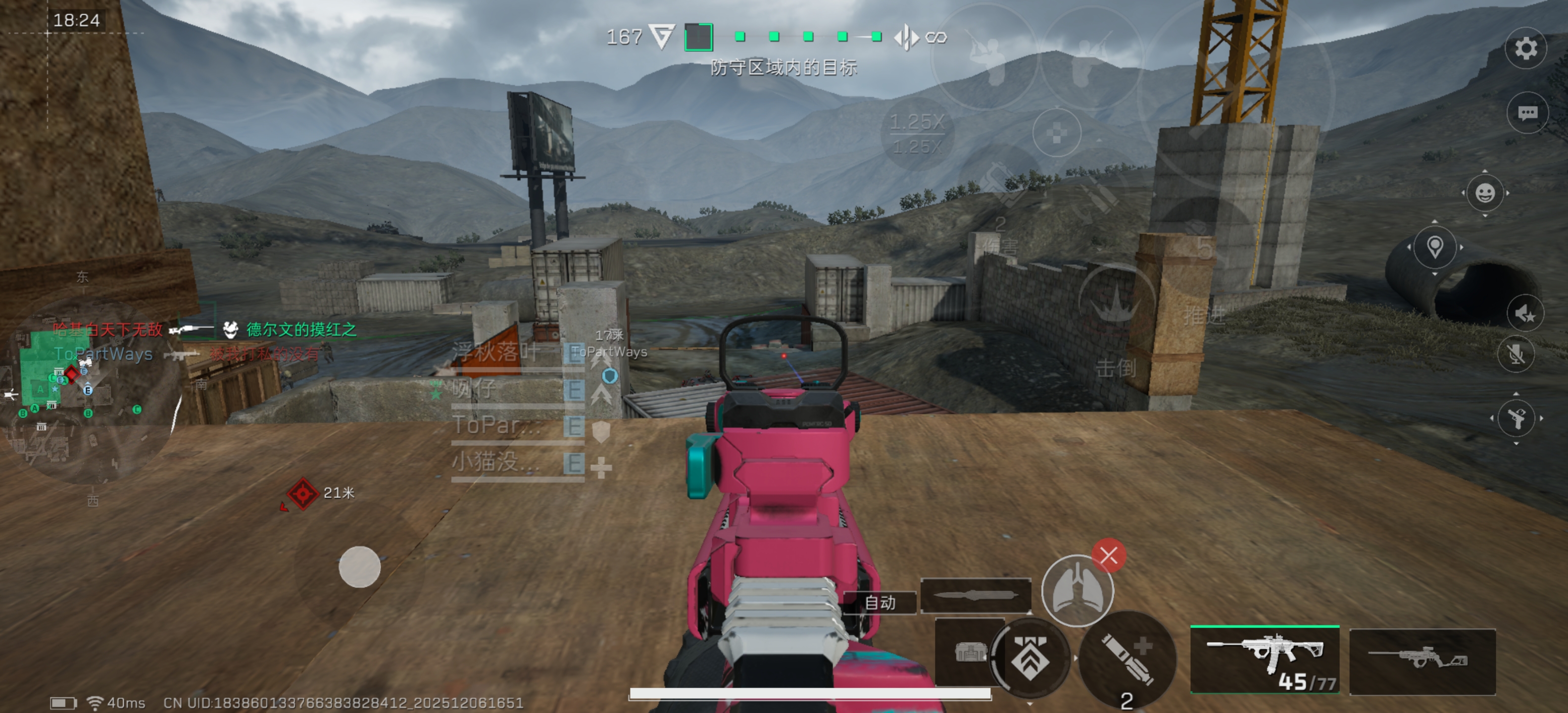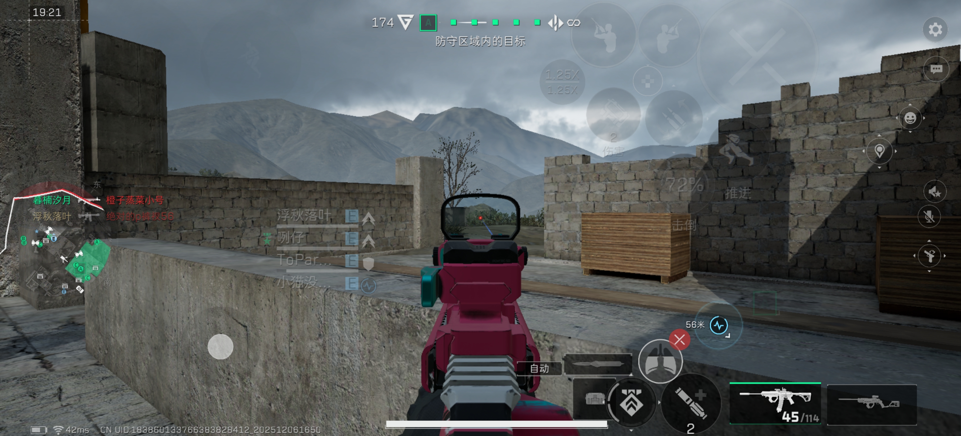 第二个点可以选择A点左侧的水泥房房顶。这个点可以和A点右侧高点的枪位置互相配合,可以互相帮助对方的视野盲区,这个点可以使用机枪、架点步枪给守方当头一击。