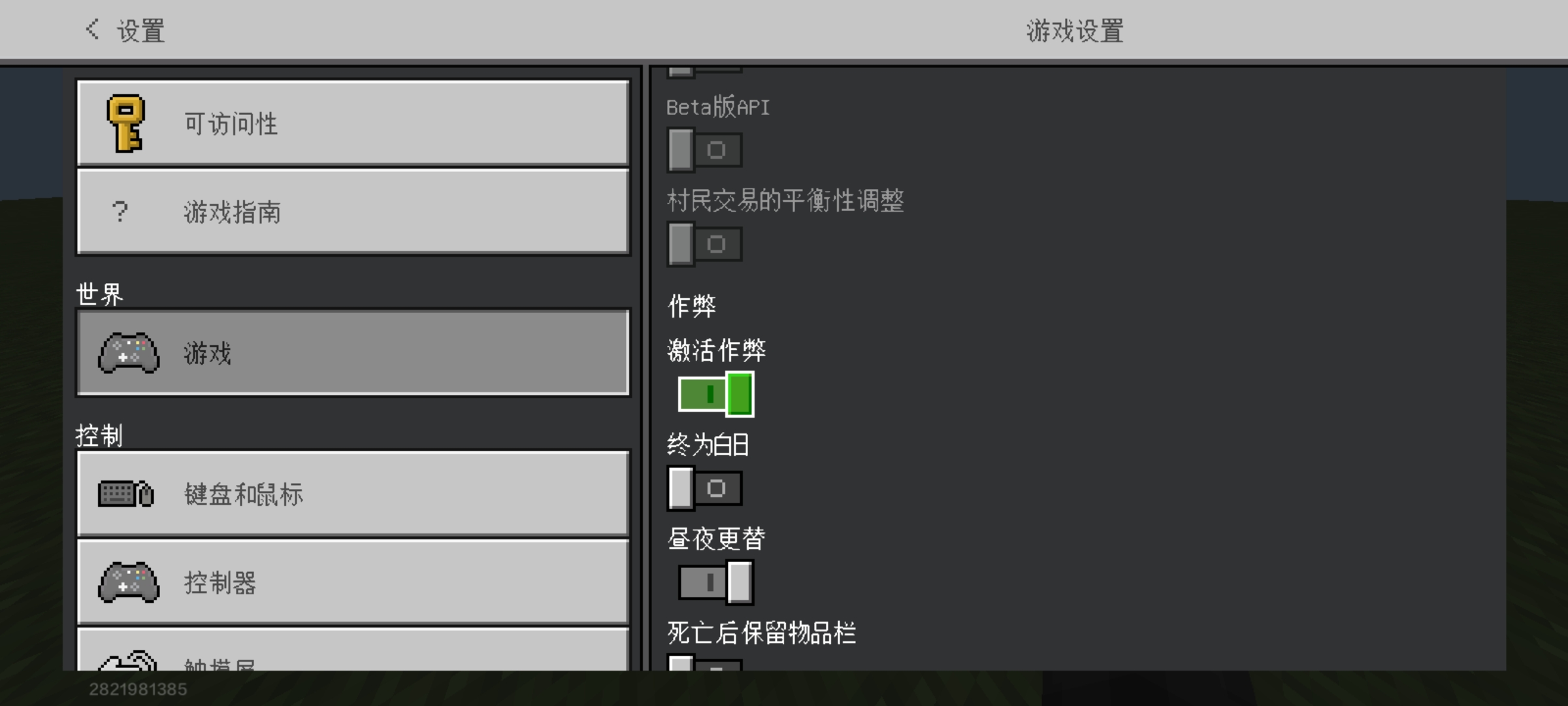 1.进入设置,将自己调成创造模式,接着往下翻,找到并打开“激活作弊”