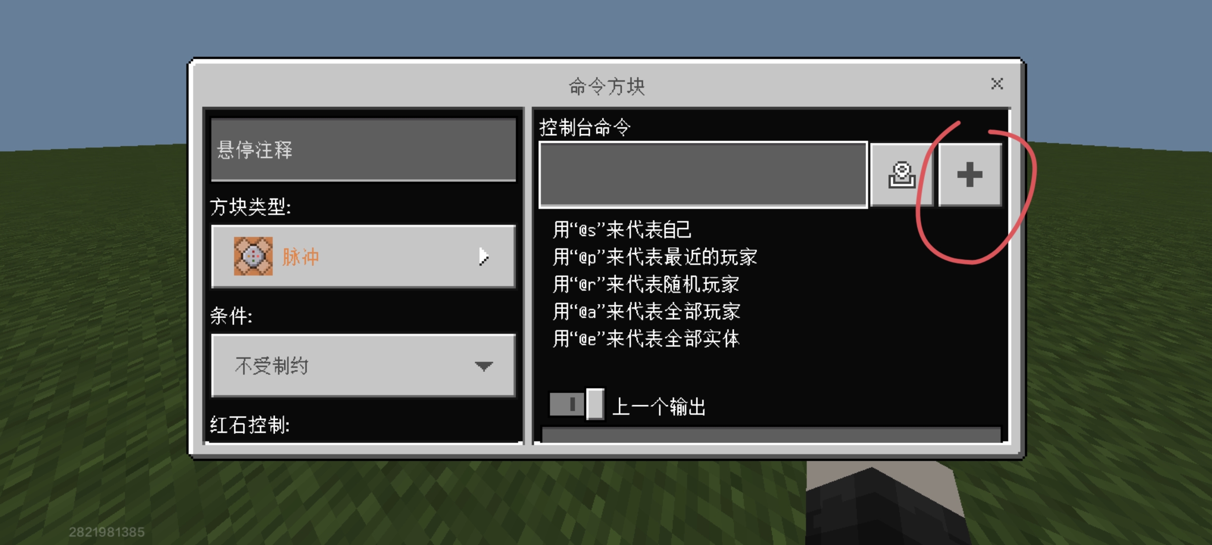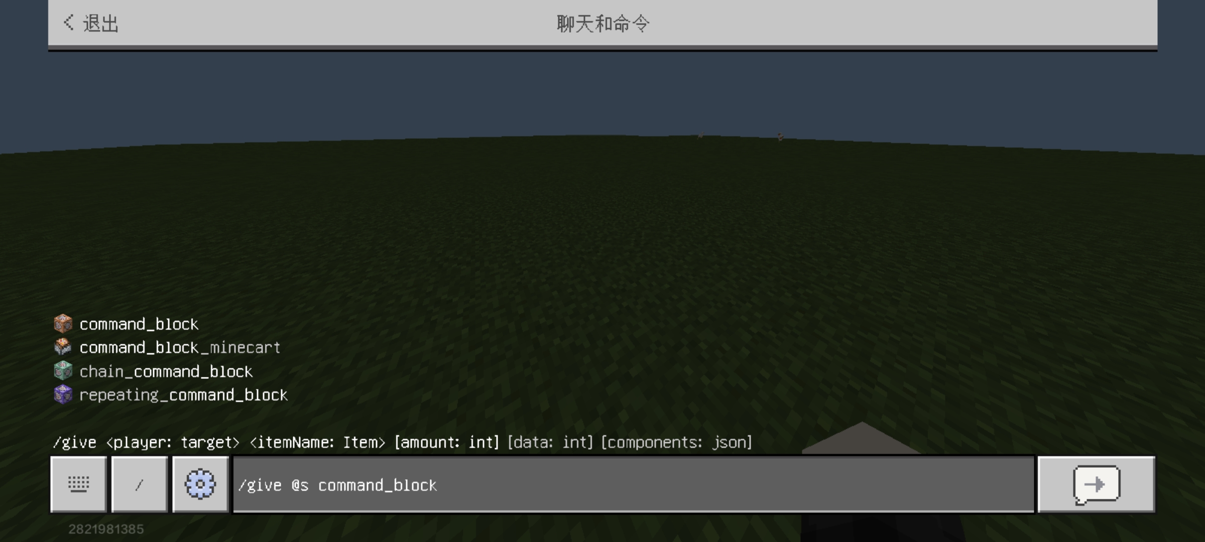 2.打开聊天框,输入/give @s command_block,获得命令方块