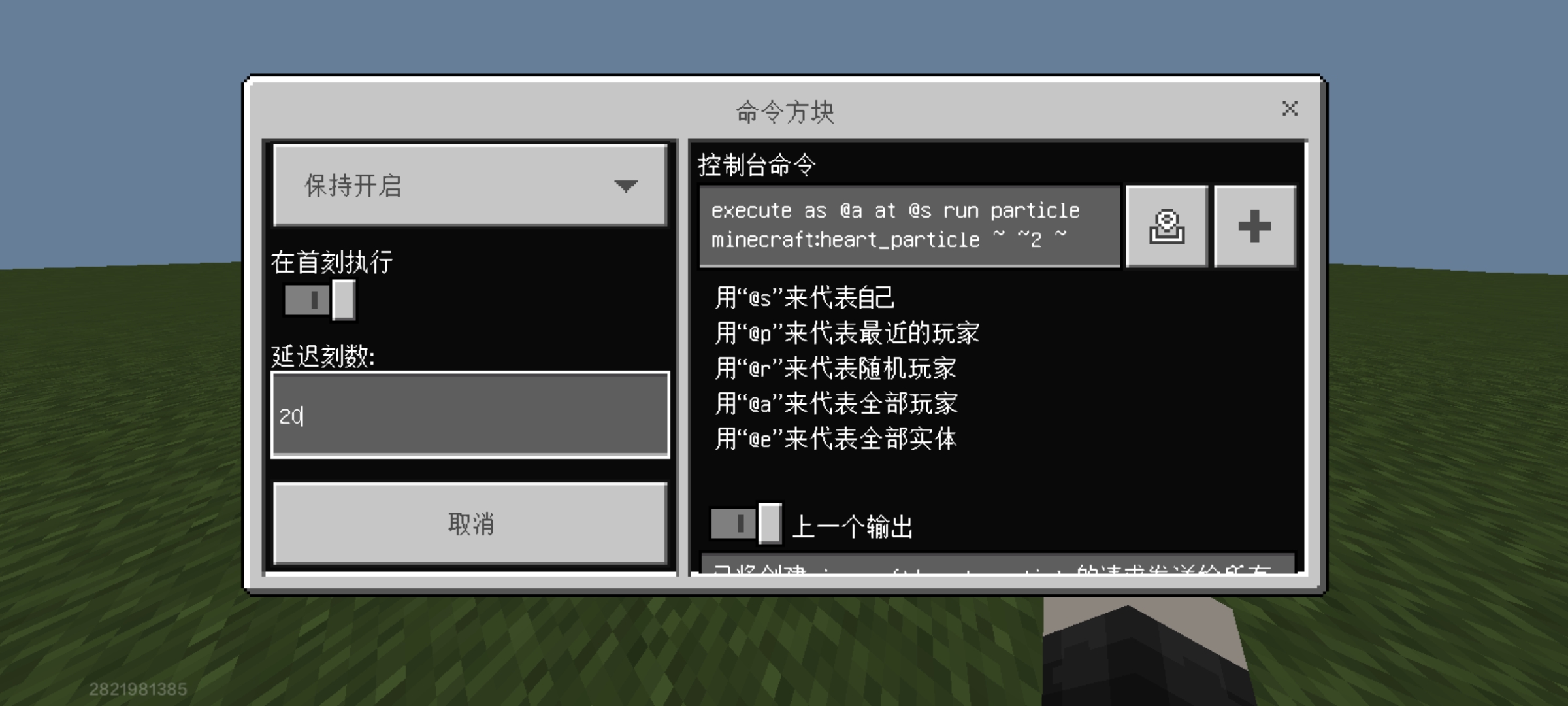 现在的命令方块每1/20秒就会冒一个爱心,速度太快了
