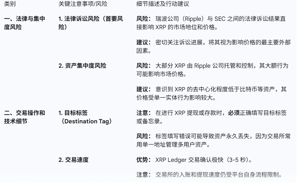 瑞波币XRP买卖注意事项总结表