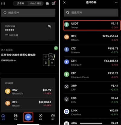 2.进入买入界面,打开OKX首页,在页面底部找到醒目的蓝色买入按钮并点击。随后,在弹出的界面中,选择您希望购买的数字货币种类。