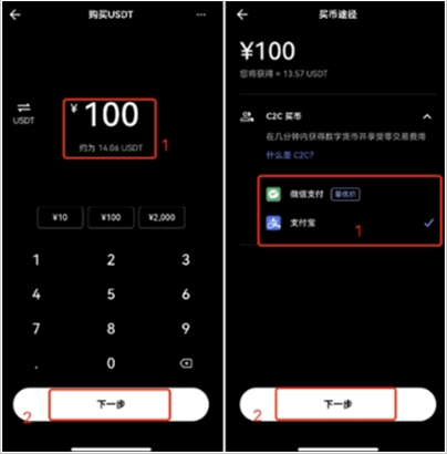 3.输入购买金额,进入下一页面后,输入您计划购买的金额,然后点击下一步。接下来,您需要选择适合您的支付方式。