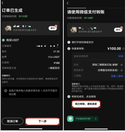 6.通知卖家并确认收款,转账完成后,返回OKX页面,点击我已转账,通知卖家。卖家在确认收到款项后,您所购买的数字资产将会自动发放到您的账户中。您可以在资产栏目下查看并确认这笔交易。