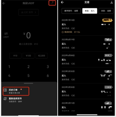 7.查看购买记录,若需查看过往的购买记录,可在购买数字资产的页面上,点击右上角的多功能图标(通常显示为三个点或更多图标),然后选择历史订单。这样,您就能轻松查阅到包括买入、卖出等在内的所有历史交易记录了。