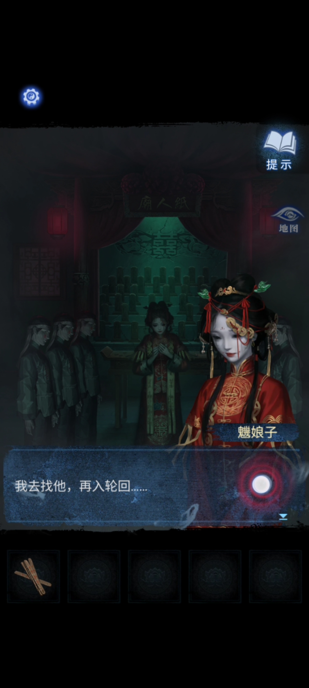 3. 回到纸人庙,把【梳妆镜】放在祭拜的公案上,触发剧情,得到【盖头】。然后从地图进入新解锁的奉奘祠。