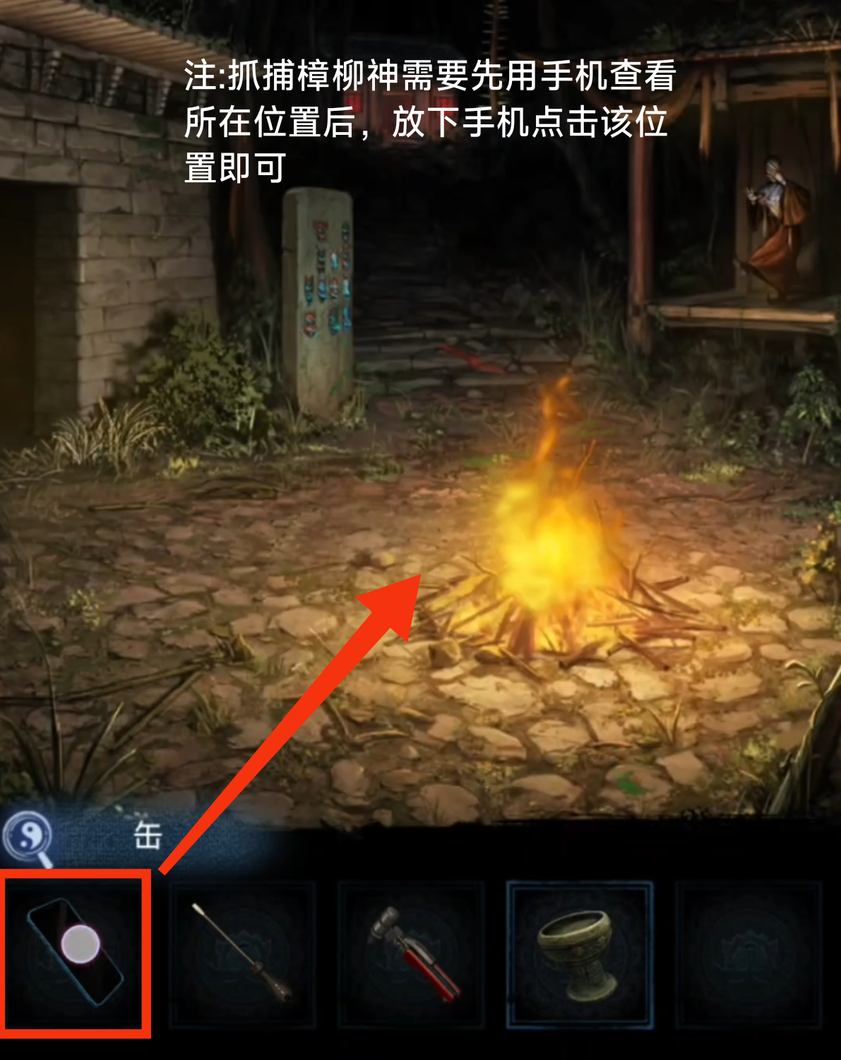 6. 返回篝火场景,使用手机,进入捕捉樟柳神小游戏,结束后获得【樟柳神】。