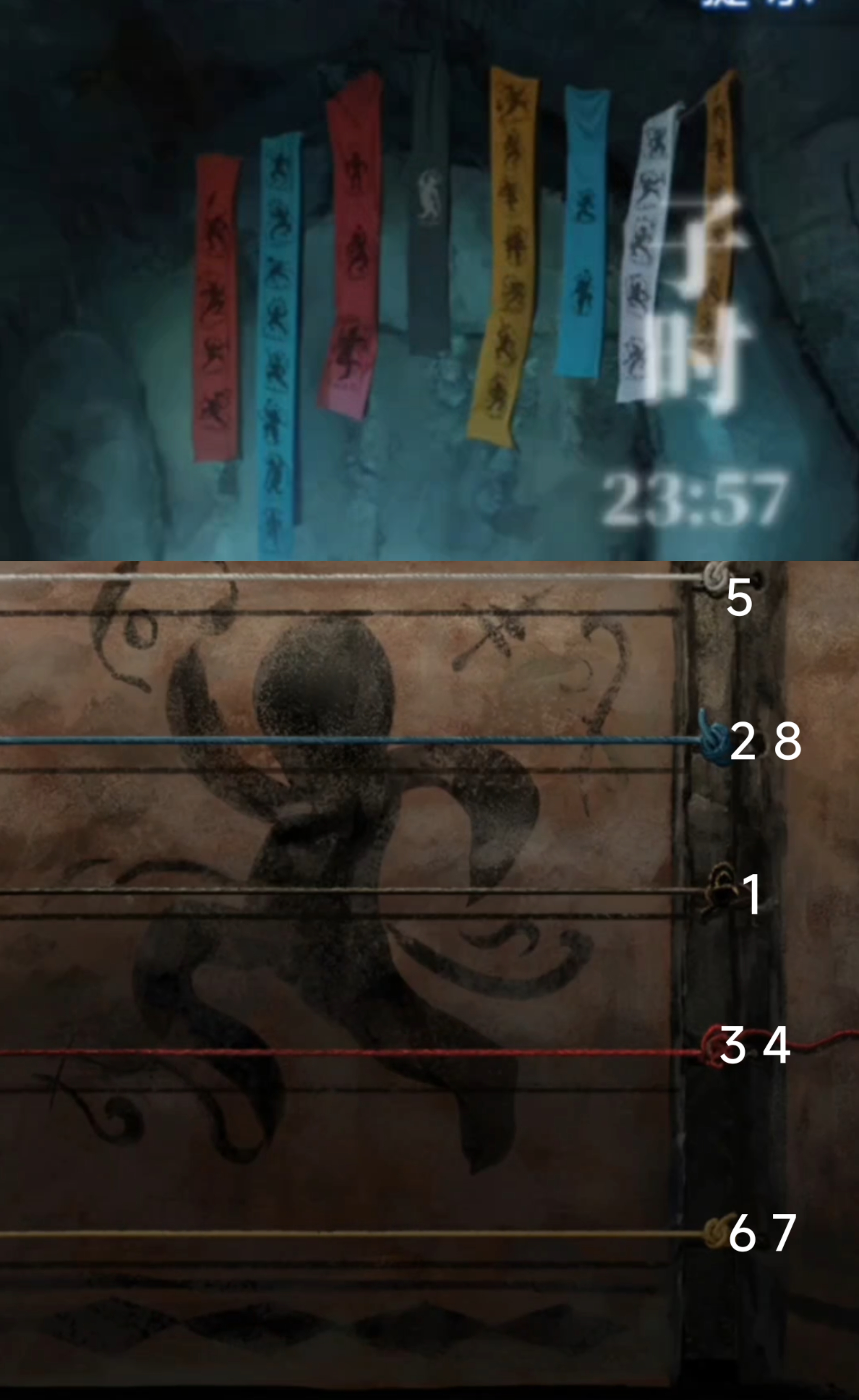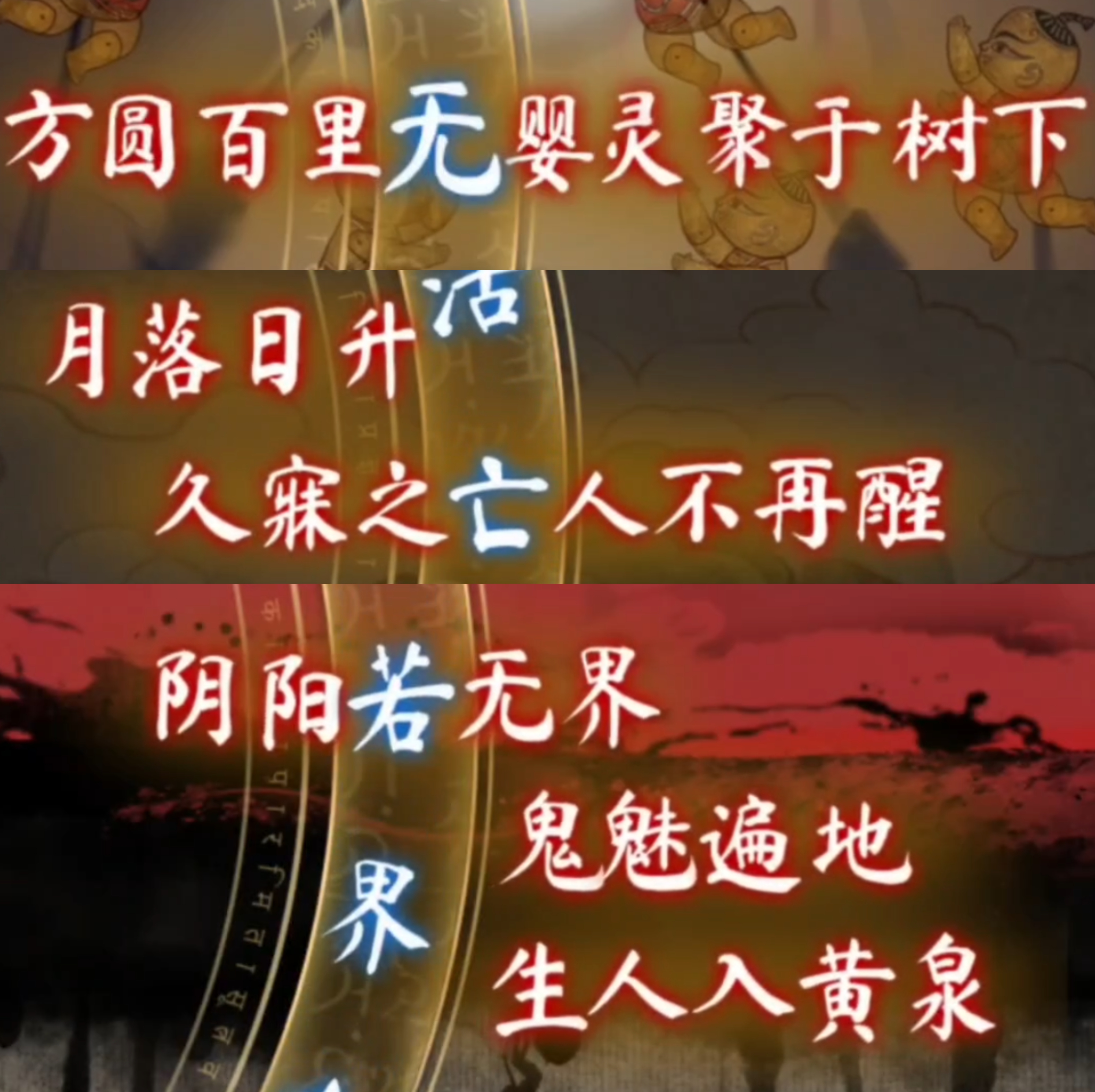 23. 进入最终大结局环节,进入第一个小游戏环节,依次调整为【无,亡,若】。进入第二个小游戏环节,依次点击对应的人头像。