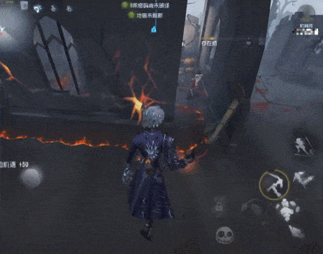 ①“愚人金”在追击到高墙板区时,往往无法知道对方是否有要博弈板子的意图,此时选择砸镐生成不稳定区域以后不要立即收回,只需在快要走到板子中间时收镐即可,如果求生者放板,虽然会被眩晕到但收镐的伤害也会一并触发,对求生者造成一个状态上的损失,倘若求生者没有选择放板而是选择接着绕板区,那就有可能拿到一次普攻伤害。