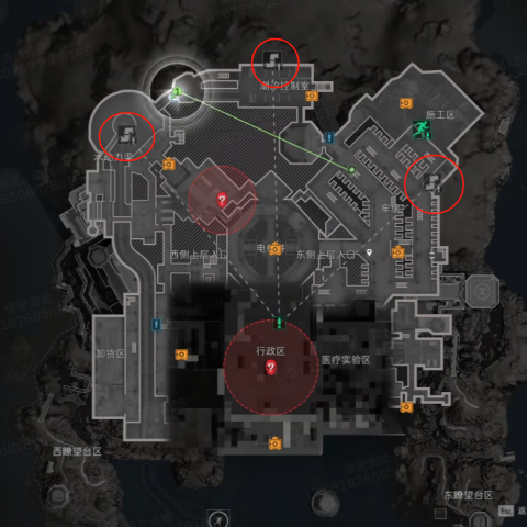 直升机撤离点会在游戏进行二十分钟后开启,这是整张地图唯一一个外围撤离点,非常的空旷,在上面提到的东西两侧瞭望台可以几乎看到整个撤离点,直升机撤离点需要在点内呆满五分钟后才能撤离,注意极限时间。