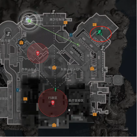 监狱的闸点开启要多一步,在核心区的医疗电脑上,找到地图上高亮的绿色电脑进行简单的指纹解密激活电脑,然后就可以去闸点拉闸,拉闸后会开启三个管道撤离点中随机的一个,拉闸撤离点没有时间限制,开局就可以直接拉,需要注意的是监狱的闸点一整局只可以拉两次,两次之后拉闸管道撤离点就会关闭。