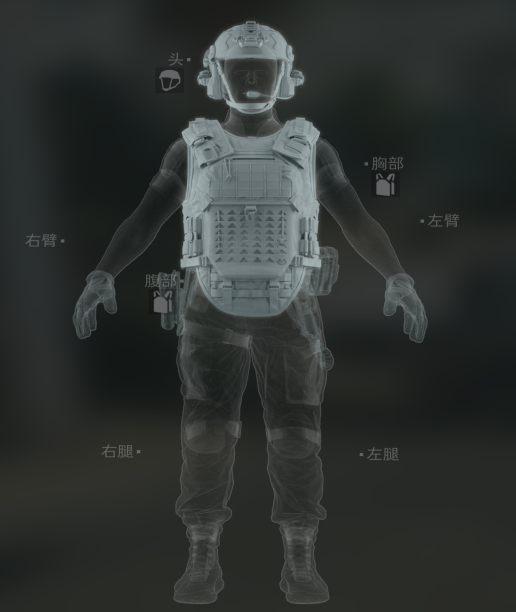 首先我们需要认识受击部位。在这里,头、胸、腹、左右臂及左右腿7个部位需要重点关注。