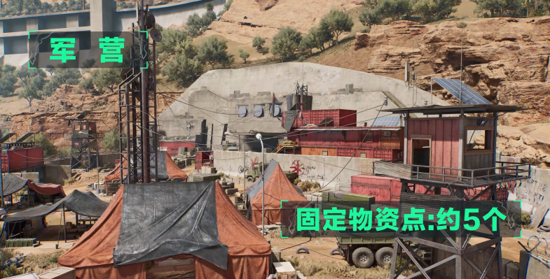 其中军营的固定物资点仅有约5个,主要产出工具材料和电子物品。