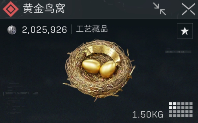 黄金鸟窝,是S6版本周年庆专属彩蛋大红,价值2025926哈夫币,也寓意着1周年纪念日时间!获取黄金鸟窝的同时,也同步解锁1周年专属的黄金鸟窝纪念徽章。但是获取难度比较困难,不仅要前期准备5个地图的协议箱,还需要到长弓溪谷地图中放置,老狼直接上干货!