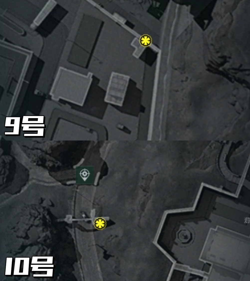 9号藏宝点位在坝顶下方L型集装箱右侧角落,寻找难度三颗星;10号藏宝点位在游客中心二号出生位也就是旁边公路上方石门角落,寻找难度三颗星。