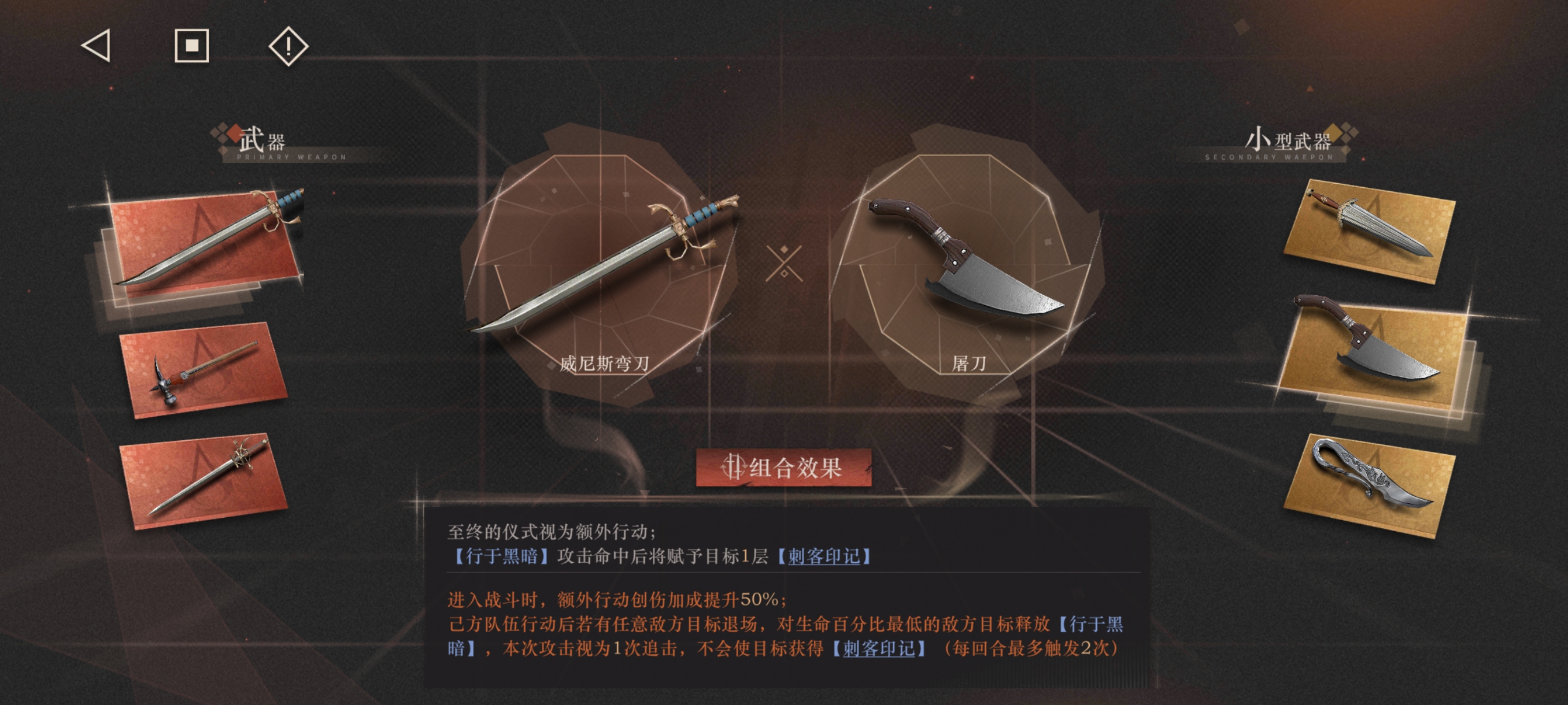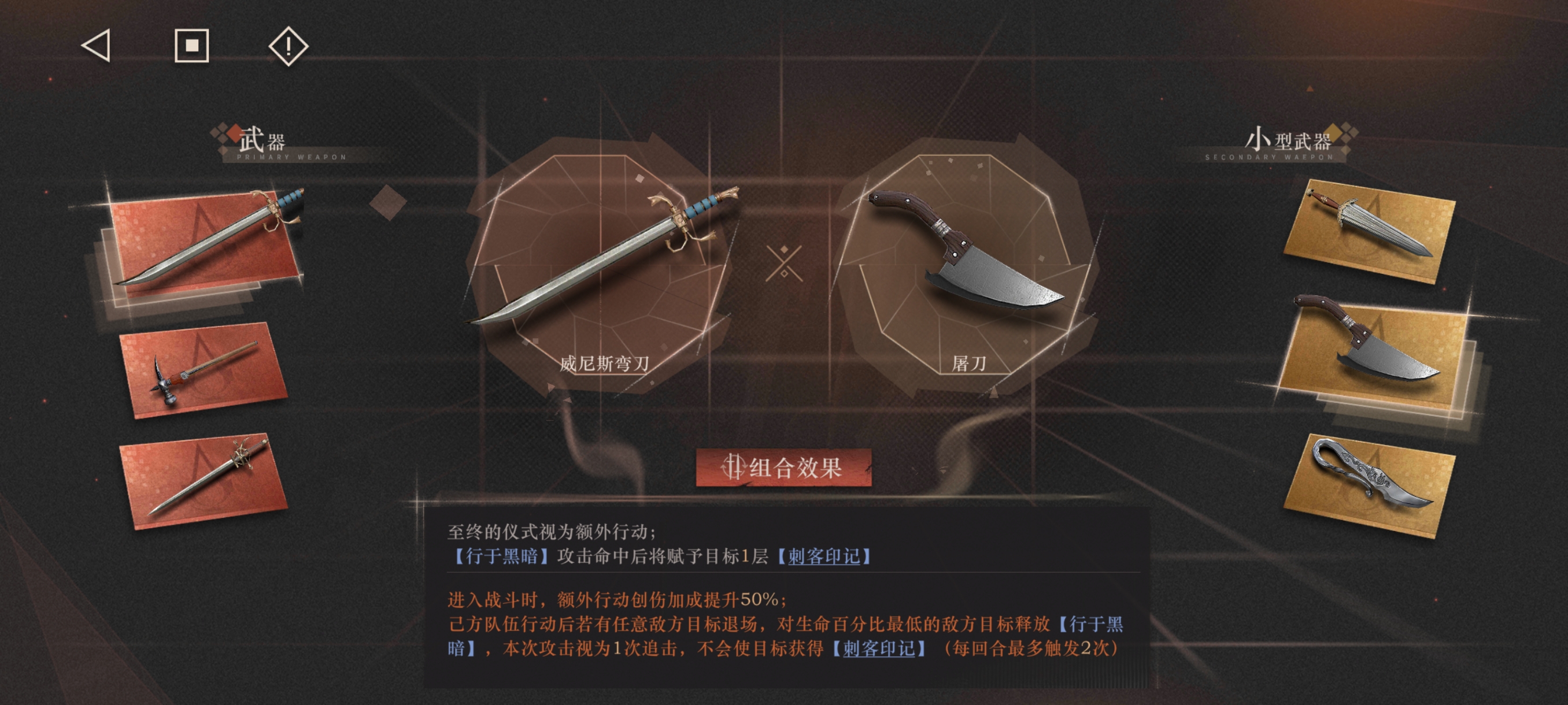 🎯 武器类型:3主武器(长剑)+3副武器(匕首),共9种组合,决定流派玩法: