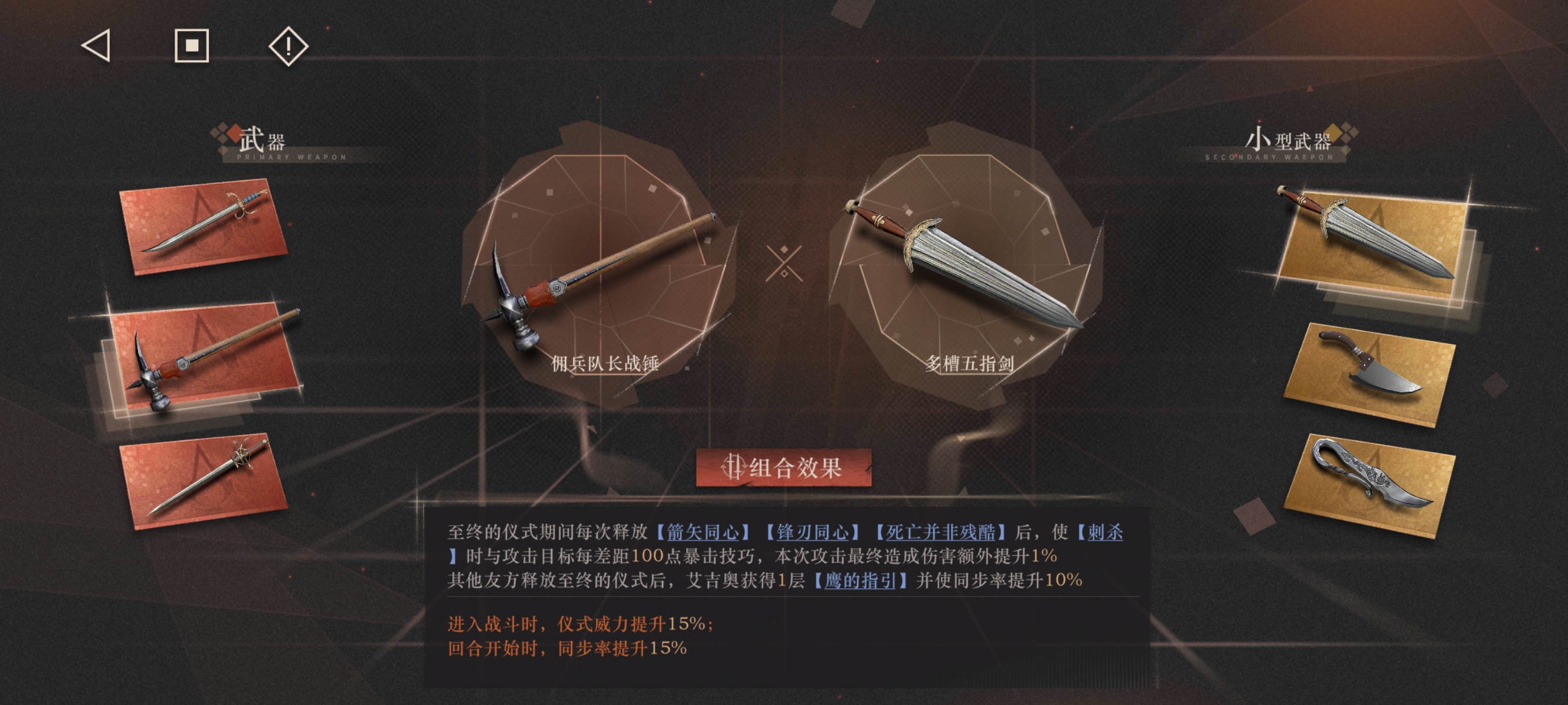 副武器:苏丹短刀(延长反击时间至2回合,同步率获取更稳定)。