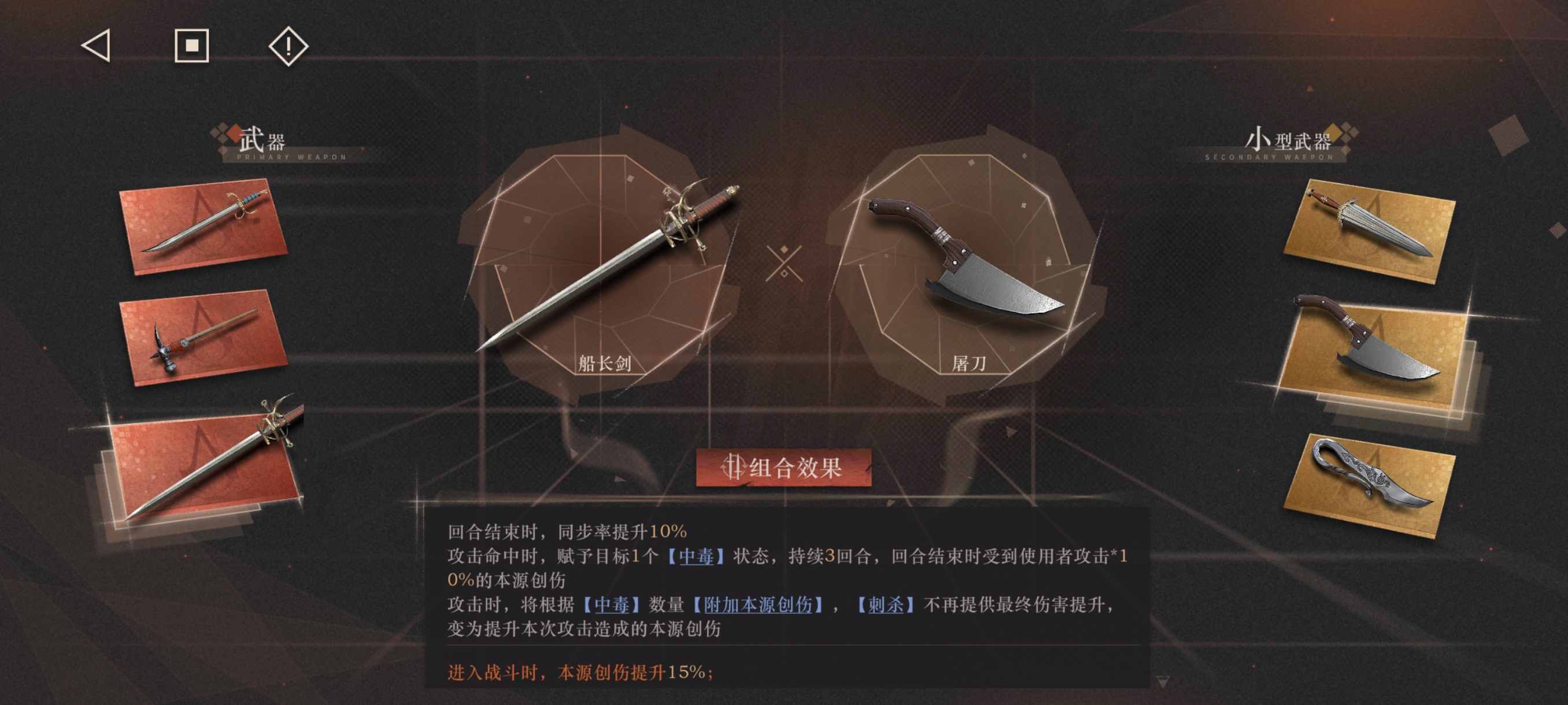 主武器:船长剑(攻击附加中毒,目标退场时层数继承);