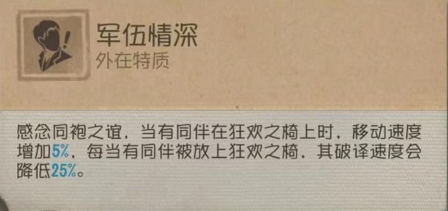★实战注意:当有队友在狂欢之椅时空军的破译速度会从100%降低为75%,这算是空军的负面效果的特质,但是会给自己增加5%移动速度也给了空军跟监管者博弈的空间
