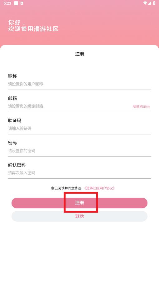 输入昵称,密码,邮箱,验证码,点击注册