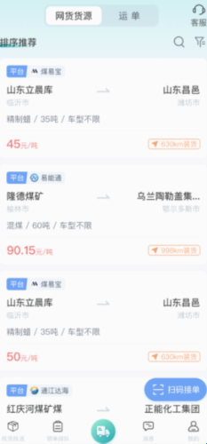 3.在应用首页,您可以查看附近的订单信息。当有合适的订单时,您可以点击接单按钮进行接单。平台也会根据您的位置、车型和运输要求等因素为您派发订单。