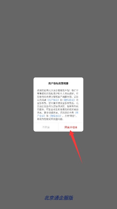1.打开应用后仔细阅读用户协议和隐私政策,确认后点击同意并继续按钮进入应用。