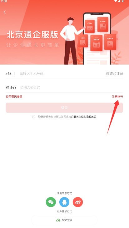 2.在登录界面选择注册账号功能选项,系统将自动跳转至信息填写的页面。