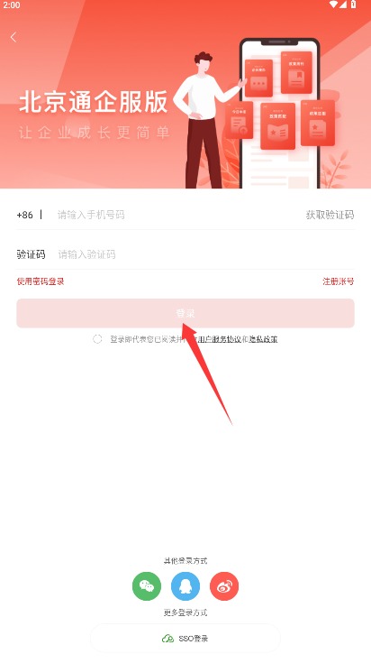 4.返回登录界面输入已注册的手机号码和短信验证码,验证通过后即可成功登录系统。