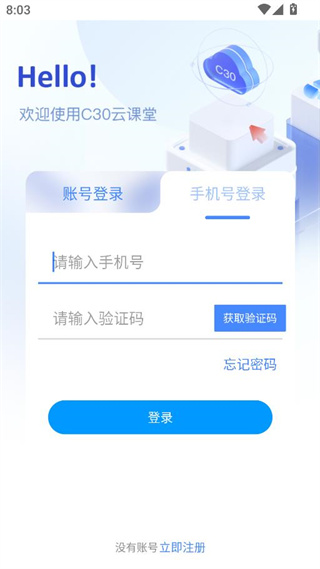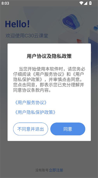 1.在手机上下载安装C30云课堂app,阅读用户协议后点击同意。