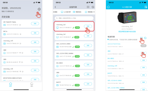 STEP3:APP 与 LCD 连接成功,进入 LCD 显示屏配对电池页面;