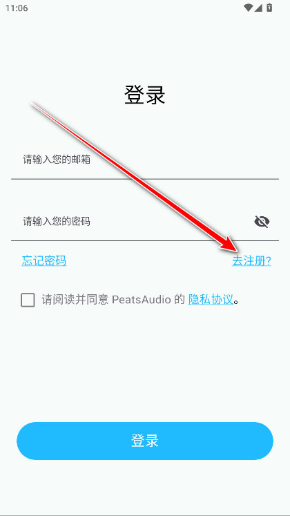 1、打开PeatsAudio,点击去注册。