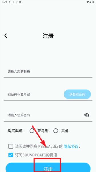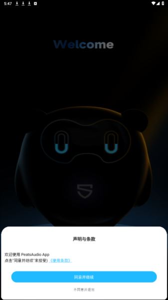 1、在本站下载并打开peatsaudio耳机app,点击同意相关协议