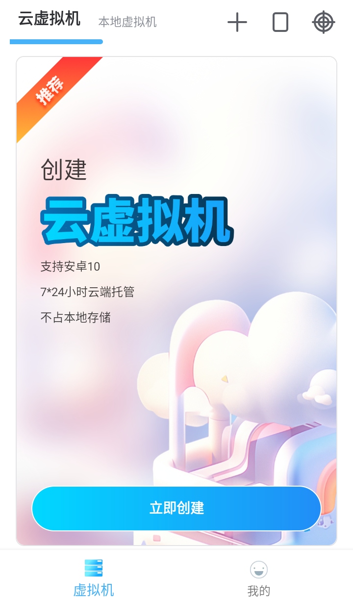 1.首先,打开VMOS Pro软件,在“首页”界面找到并点击“添加虚拟机”。