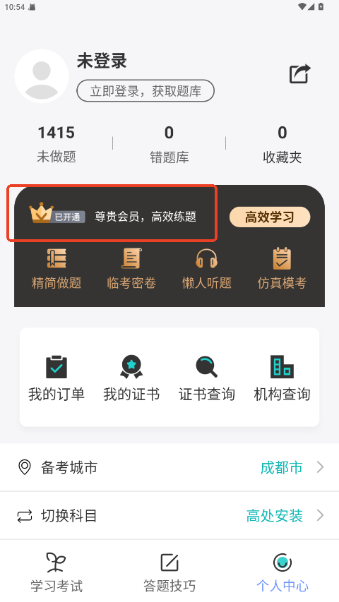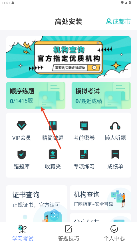 4.点击模拟考试去锻炼自己的考试能力