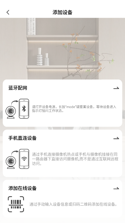 2.通过扫描机身二维码或输入设备序列号完成摄像头添加。绑定过程中需保持设备与手机连接同一Wi-Fi网络。