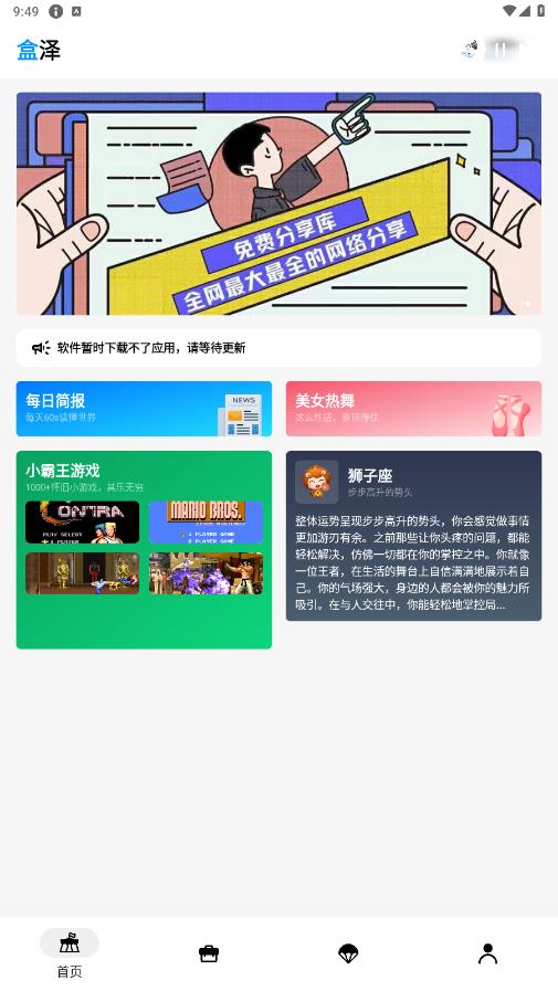 5.进入首页,这里可以选择每日简报,星座,小霸王游戏等工具直接使用