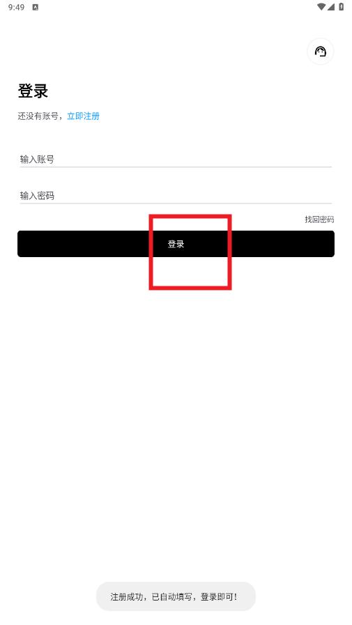 4.注册成功后会自动返回登录界面,输入注册好的账号和密码,点击登录