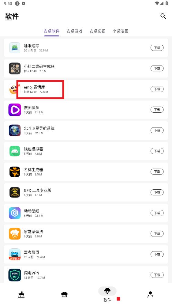 7.软件界面提供了安卓软件,安卓游戏,安卓影视,小说漫画找资源,点击资源查看详情