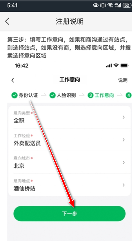 1.请先完成上一个问题的注册,填写完工作意向之后,然后点击下一步。
