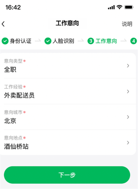 第三步:填写工作意向,如果和商沟通过有站点则选择站点,如果没有商,则选择意向区域,并搜索选择意向区域