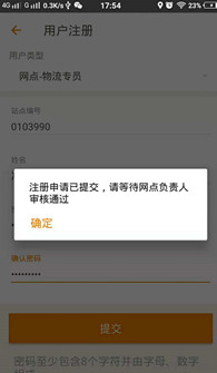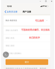 3.填入相关信息点击提交(站点编码选:非主系统的其他系统,因为主系统无签收功能,哪个司机送哪个承包区的货就维护到哪个账号)。