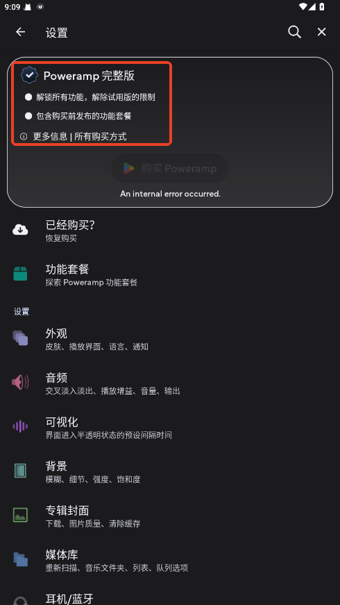5、在设置页面,你可以进行软件的自定义设置,例如外观、音频、可视化、背景、专辑封面、媒体库、耳机/蓝牙、锁屏等。
