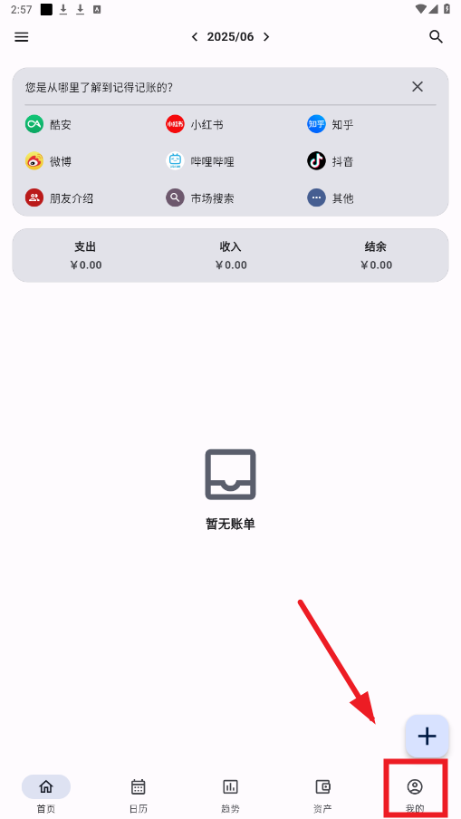 1.打开记得记账,进入首页,点击右下角我的