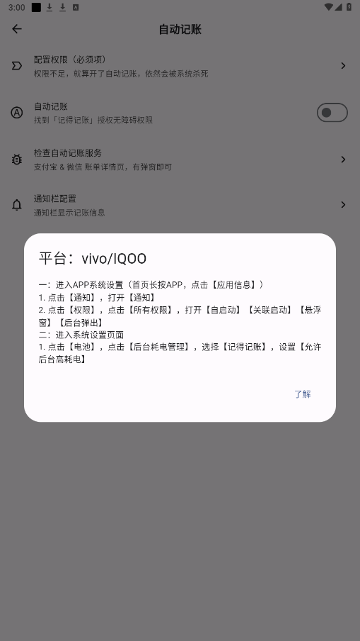 7.按照提示,配置权限,即可开始自动记账