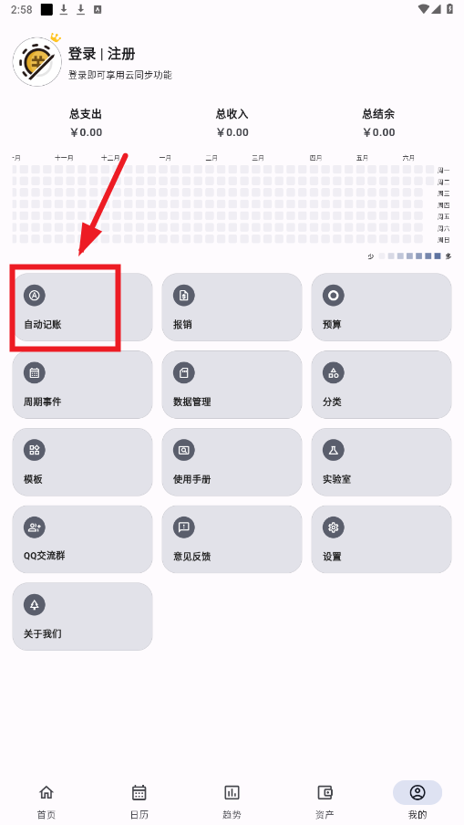 2.进入个人中心,找到自动记账