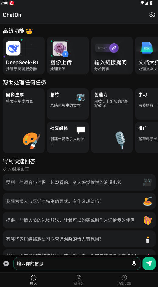 chaton完全没有任何操作门槛,哪怕是家里的长辈也能秒上手。它最核心的魅力在于那种懂人心的灵活性,它的回答不是冷冰冰的格式化模板,而是能根据你的语境变换语气,既能严谨得像个教授,也能幽默得像个段子手。相比于市面上功能散乱的小工具,ChatOn 最大的优势在于一站式搞定,它把搜资料、改作文、做图、理思路等功能全部塞进了一个App里,省去了你在不同软件间跳来跳去的麻烦,极大地节省了手机空间和时间成本。