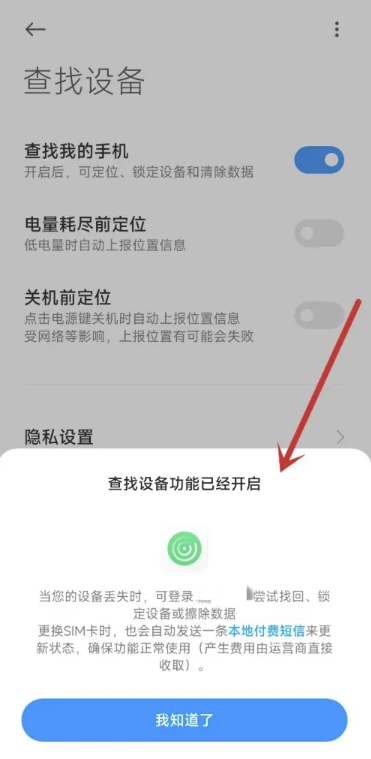 5.弹出成功提示,即表示查找设备功能已经开启。